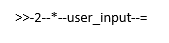 >>-<kwd>2</kwd>–<oper>*</oper>–<var>user_input</var>–<delim>=</delim>